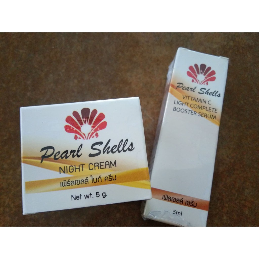 เซ็ตคู่ เพิร์ลเชลล์ Pearlshells ครีมกลางคืน + เซรั่ม เพิร์ลเชลล์ pearlshells serum ราคา 240 ฿. (4.8) อัพเดทล่าสุด 18/04/2026 15:09