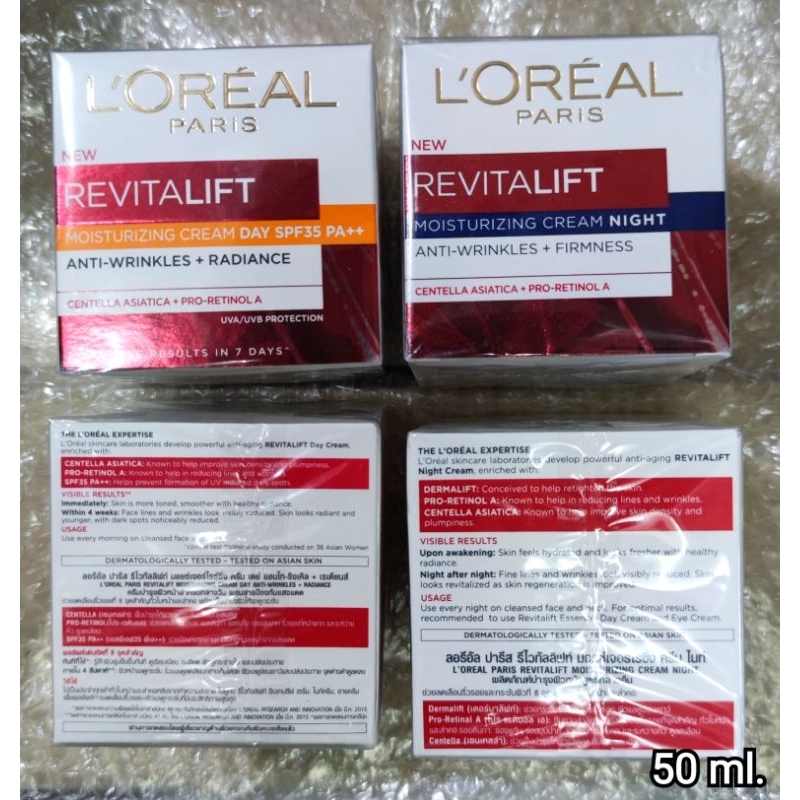 (50ml.) exp.10-12/2027 มีช้อยส์..ครีมL'oreal Revitalift ลอรีอัลปารีสรีไวเทิลลิฟ <DayครีมกลางวันSPF35/Nightครีมกลางคืน> ราคา 395 ฿. (4.9) อัพเดทล่าสุด 18/04/2026 12:08