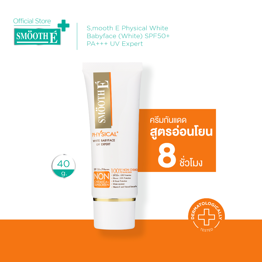 Smooth E ครีมกันแดด Physical White Babyface (White) SPF50+ PA+++ UV Expert อ่อนโยน ปกป้อง8ชม ราคา 289 ฿. (4.9) อัพเดทล่าสุด 15/04/2026 06:08