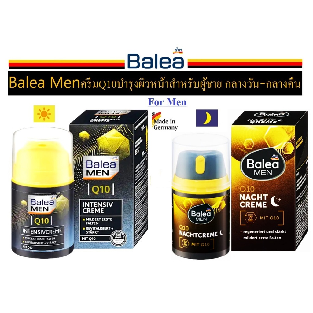 Balea MenครีมQ10บำรุงผิวหน้าสำหรับผู้ชาย กลางวัน-กลางคืน จากเยอรมัน Balea Men Gesichtscreme Q10 Intensiv, 50 ml ราคา 269 ฿. (4.7) อัพเดทล่าสุด 02/04/2026 00:08