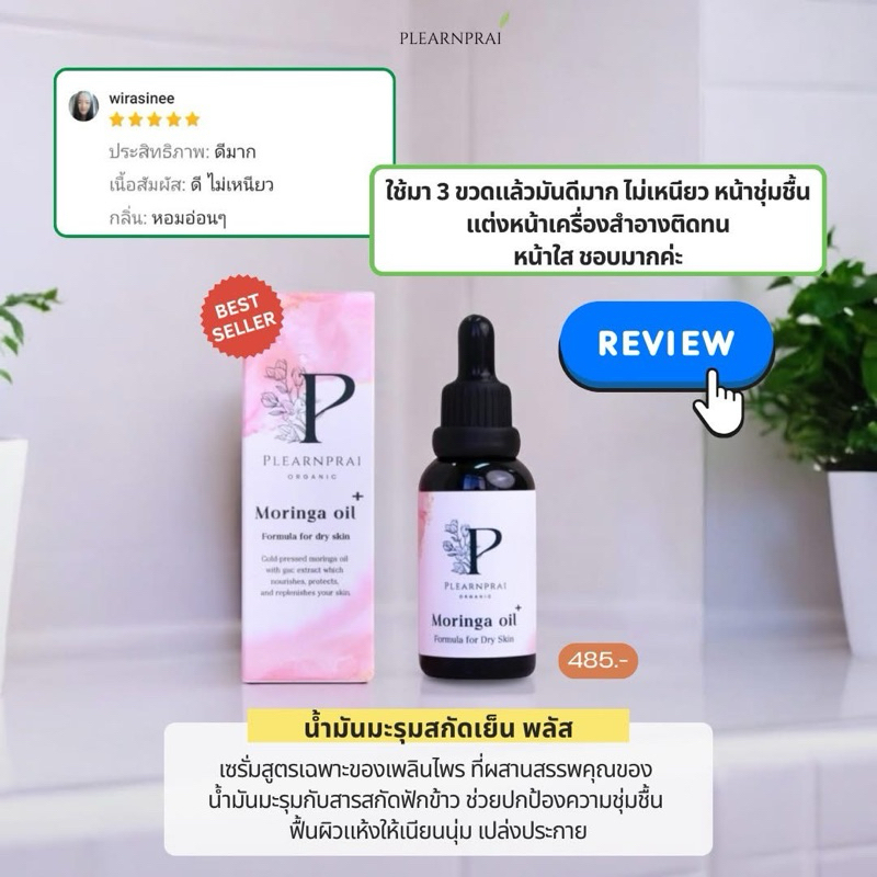 Moringa Oil Plus เซรั่มน้ำมันบำรุงผิวหน้า ผสม น้ำมันมะรุม น้ำมันมะพร้าว สารสกัดฟักข้าว ออร์แกนิค 30 ml. ราคา 529 ฿. (4.7) อัพเดทล่าสุด 01/04/2026 18:09