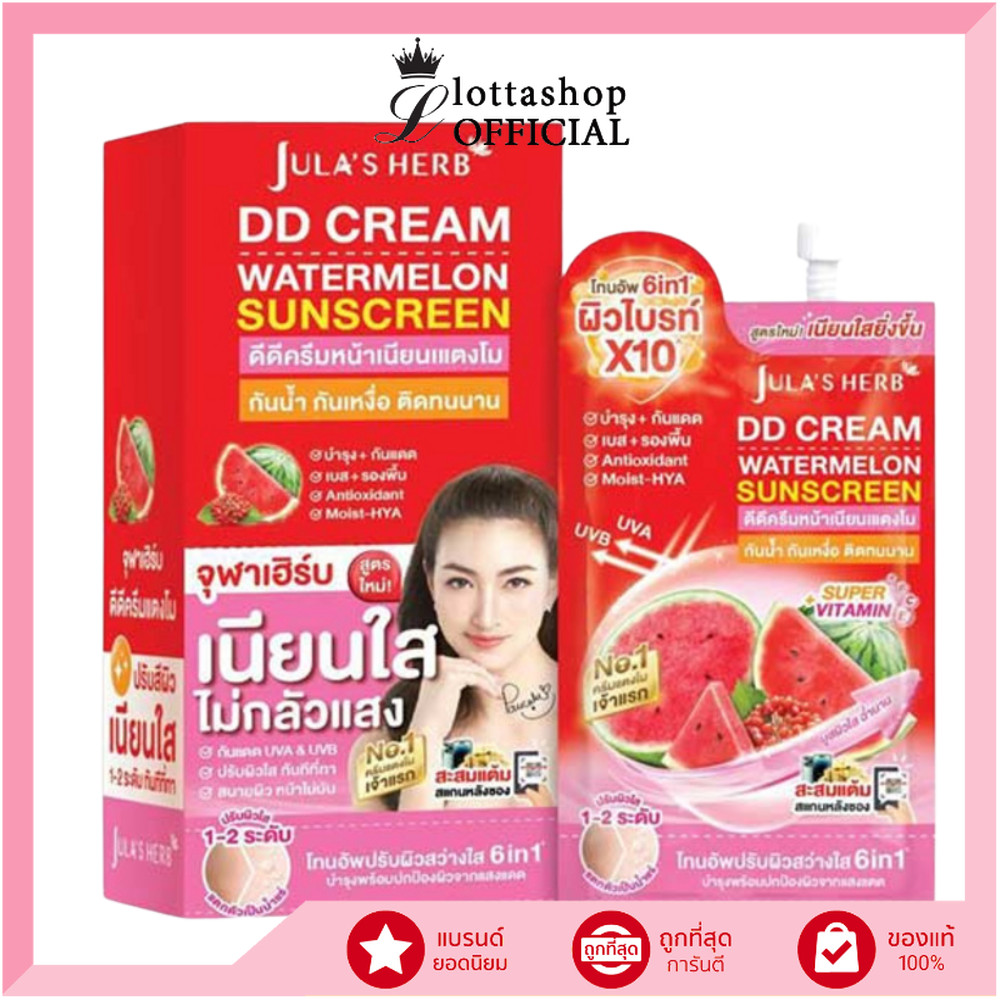 (กล่องX6ซอง) Jula's Herb จุฬาเฮิร์บ ดีดีครีมกันแดดแตงโม SPF50 PA+++ 8 ml. ราคา 289 ฿. (4.9) อัพเดทล่าสุด 15/04/2026 01:45