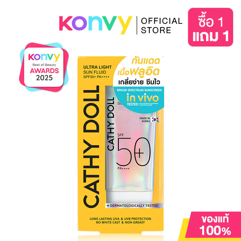 Cathy Doll Ultra Light Sun Fluid SPF50+ PA++++ 70ml ครีมกันแดดเนื้อฟลูอิด สูตรสำหรับออกแดดแรง. ราคา 450 ฿. (4.9) อัพเดทล่าสุด 15/04/2026 01:43