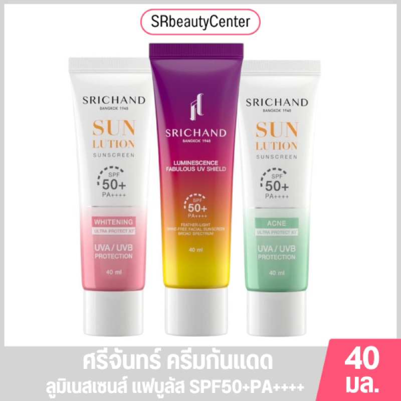 Srichand ศรีจันทร์ ครีมกันแดด SPF50+ PA++++ 40มล. มี 3สูตร ราคา 139 ฿. (4.9) อัพเดทล่าสุด 15/04/2026 03:09