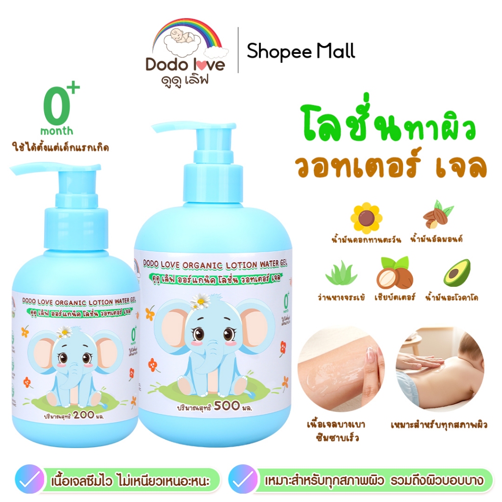dodolove ออร์แกนิค โลชั่น วอทเตอร์ เจล บำรุงผิวเด็ก เนื้อเจล กลิ่นหอม เหมาะกับทุกสภาพผิว ใช้ได้ตั้งแต่แรกเกิด ราคา 91 ฿. (4.8) อัพเดทล่าสุด 11/04/2026 06:08