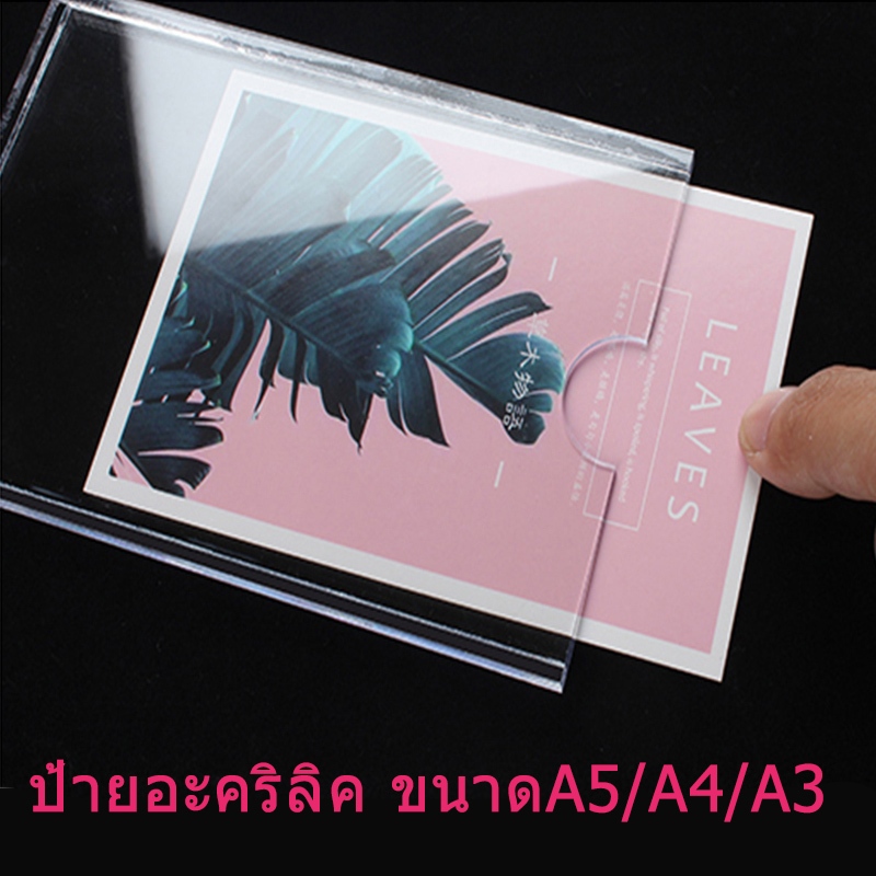 🚚พร้อมส่ง🚚 ป้ายอะคริลิค ขนาดA5/A4/A3 กล่องใส่สื่อโฆษณา ป้ายเมนู ใสสอดกระดาษ แนวตั้ง/นอน แถมกาวสำหรับยึดกับพื้นผิวเรียบ ราคา 65 ฿. (5.0) อัพเดทล่าสุด 09/04/2026 12:04