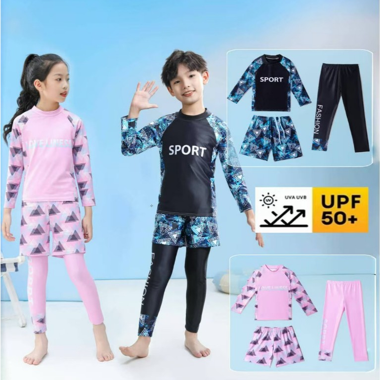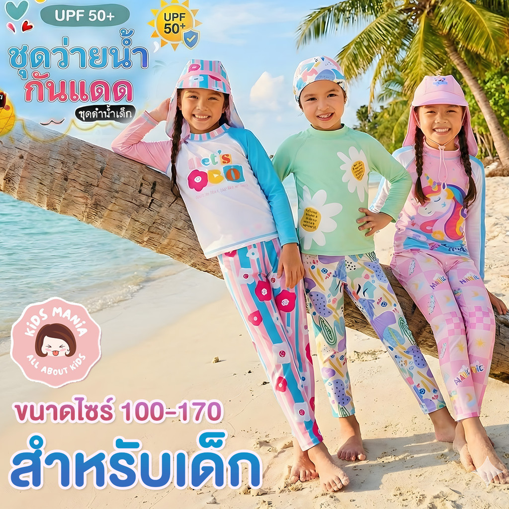 ชุดว่ายน้ำเด็กผู้หญิง3ชิ้น เสื้อแขนยาว+กางเกงขายาว+กางเกงขาสั้น ใส่ได้หลายแบบ กันแสงUPF50+ ☀️ (สินค้ามาใหม่) ราคา 349 ฿. (4.9) อัพเดทล่าสุด 09/04/2026 01:02