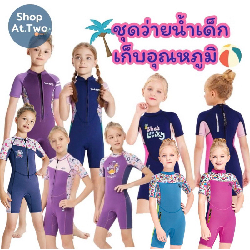 ShopAt.Two[SW-1878] ชุดว่ายน้ำเด็ก (แถมหมวก) ชุดเก็บอุณหภูมิเด็ก Dive & Sail แห้งไว หนา 2.5 mm ราคา 640 ฿. (4.9) อัพเดทล่าสุด 09/04/2026 02:02