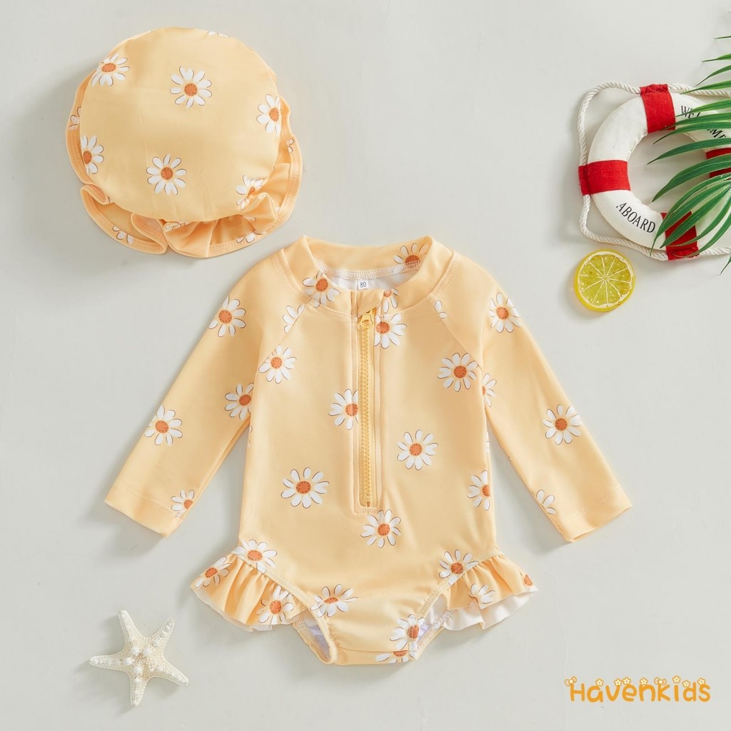 ชุดว่ายน้ําเด็กผู้หญิงอายุ 0-3 ปี พิมพ์ลายดอกไม้ บิกินี่ซิปลงมาพร้อมหมวก ราคา 166 ฿. (4.9) อัพเดทล่าสุด 09/04/2026 00:03