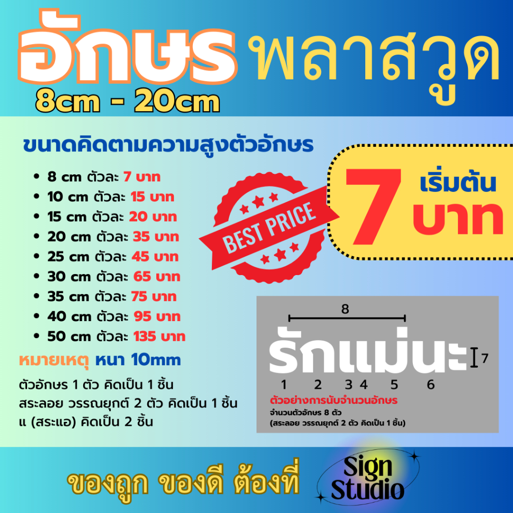 ป้ายตัวอักษรพลาสวู๊ด พลาสวูด ติดผนัง โลโก้ แต่งร้าน ชื่อร้าน อักษรงานแต่ง ป้ายบริษัท 10มิล 8-20cm ราคา 7 ฿. (5.0) อัพเดทล่าสุด 17/04/2026 00:04