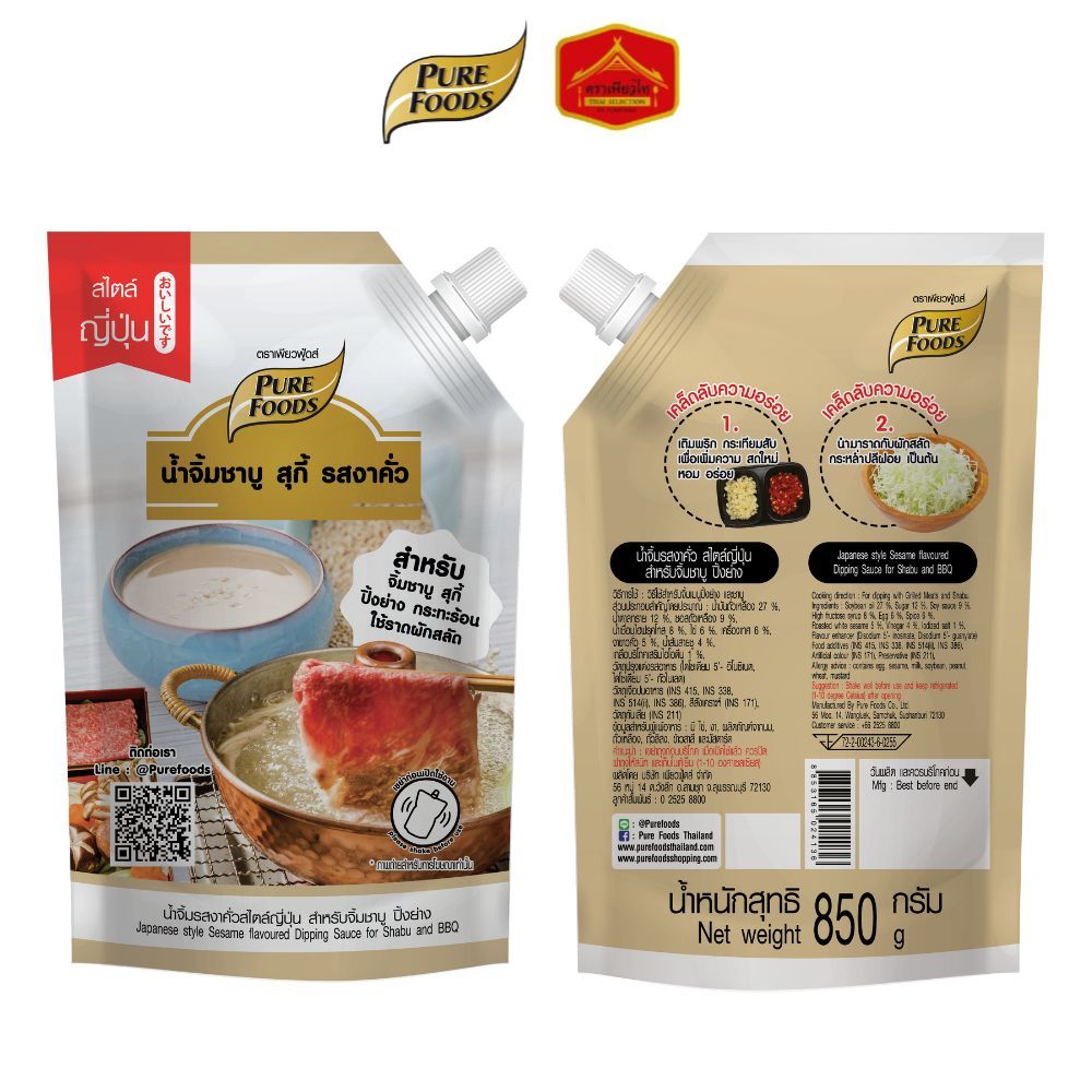 (มีฮาลาล) เพียวฟู้ดส์ น้ำจิ้มชาบู สุกี้ รสงาคั่ว สไตล์ญี่ปุ่น สำหรับจิ้ม ชาบู ปิ้งย่าง ขนาด 850 กรัม ราคา 129 ฿. (4.9) อัพเดทล่าสุด 17/04/2026 03:00