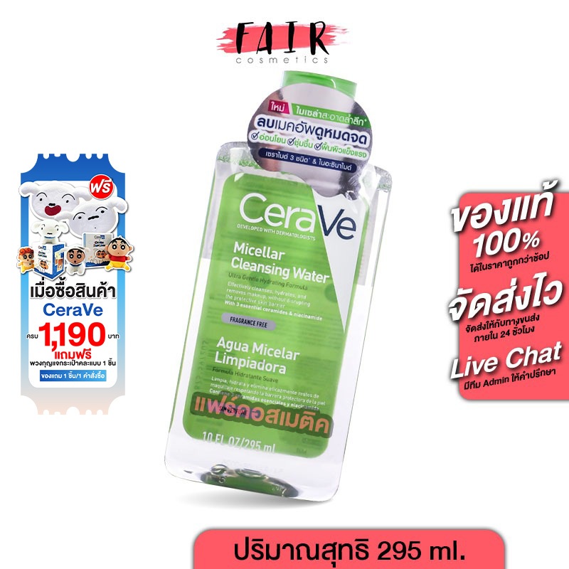CeraVe Micellar Cleansing Water เซราวี ไมเซล่า คลีนซิ่ง วอเตอร์ [295 ml.] คลีนเซอร์ เช็ดทำความสะอาดผิวหน้า สูตรอ่อนโยน ราคา 499 ฿. (5.0) อัพเดทล่าสุด 17/04/2026 03:09
