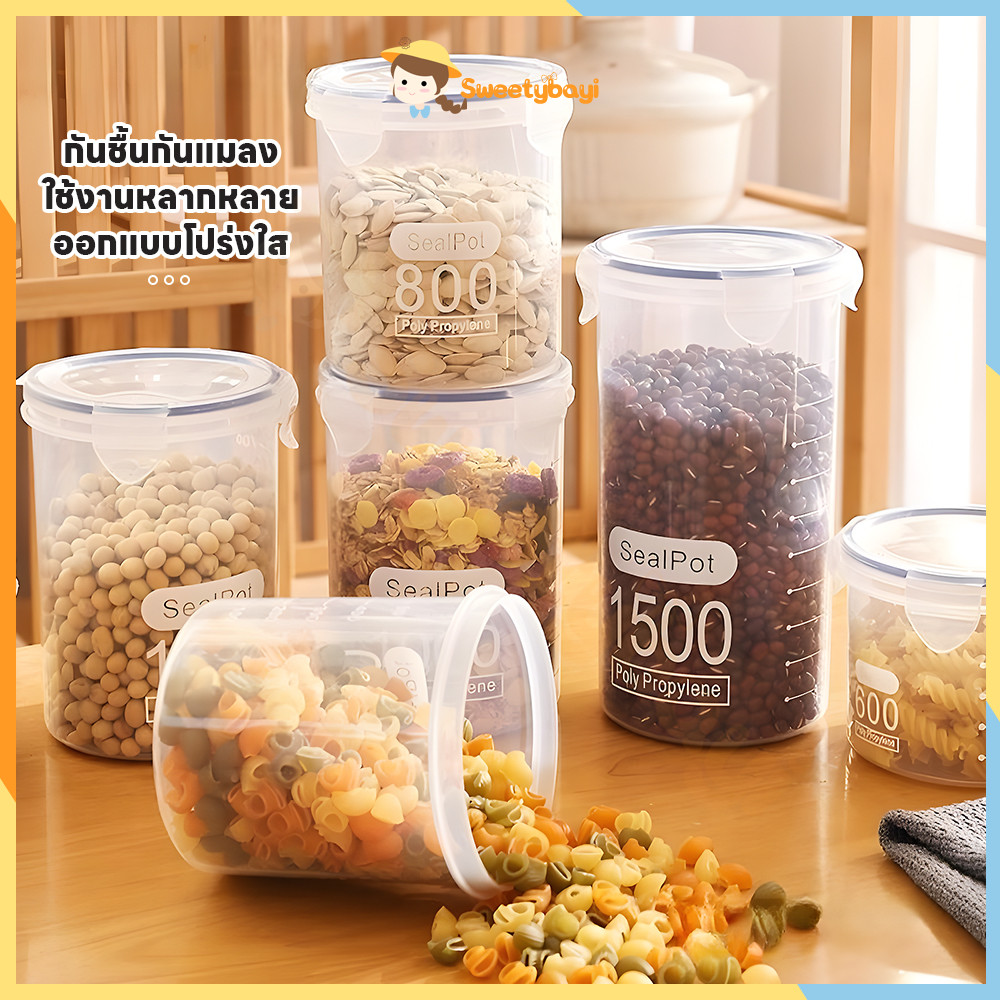 SWEETYBAYI ถังเก็บ ถนอมอาหาร เก็บอาหารแห้ง กล่องใส่ของ ใช้งานได้หลายฟังก์ชัน กระปุกใส่อาหาร ราคา 13 ฿. (4.8) อัพเดทล่าสุด 07/04/2026 12:01