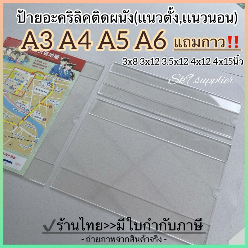 🌟พร้อมส่ง ป้ายอะคริลิคใส ติดผนัง*พร้อมแผ่นกาวยึด6มุม 3.5x12/ 3.5x15/ 4x12/ 4x15/ A5/ A4 /A3 แนวตั้ง,แนวนอน #WALL ราคา 40 ฿. (4.9) อัพเดทล่าสุด 16/04/2026 18:04
