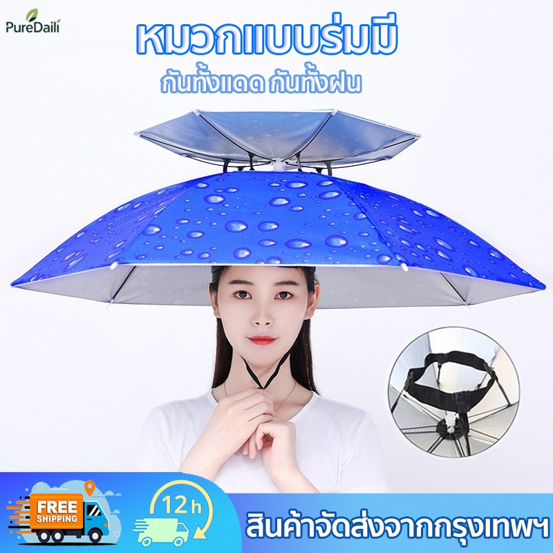 หมวกร่ม หมวกแบบร่มมี 2 ชั้น หมวกร่มใส่หัว แบบพับ ใส่ง่าย รมกันยูวี กันฝน ร่มกันแดด แข็งแรงทนทาน ใช้ได้ทั้งผู้ใหญ่และเด็ก ราคา 106 ฿. (4.9) อัพเดทล่าสุด 05/04/2026 00:02