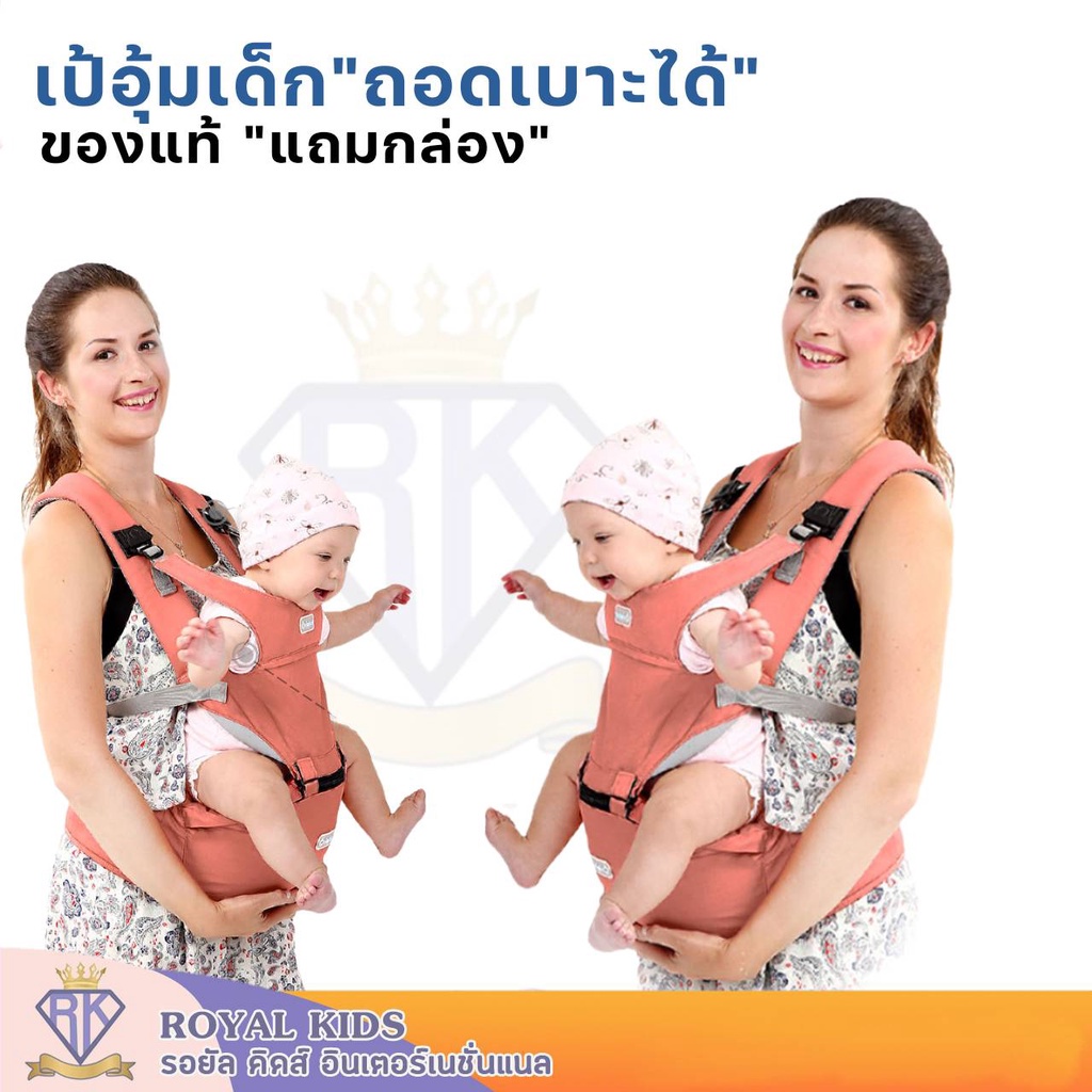 Royal kids เป้อุ้มเด็ก เป้อุ้ม เป้อุ้มเด็กแรกเกิด เป้อุ้มสะพาย เป้อุ้มเด็กนั่งได้ สะพายหน้า-หลัง 3 IN 1 แยกชิ้นได้ ราคา 289 ฿. (4.9) อัพเดทล่าสุด 04/04/2026 12:02