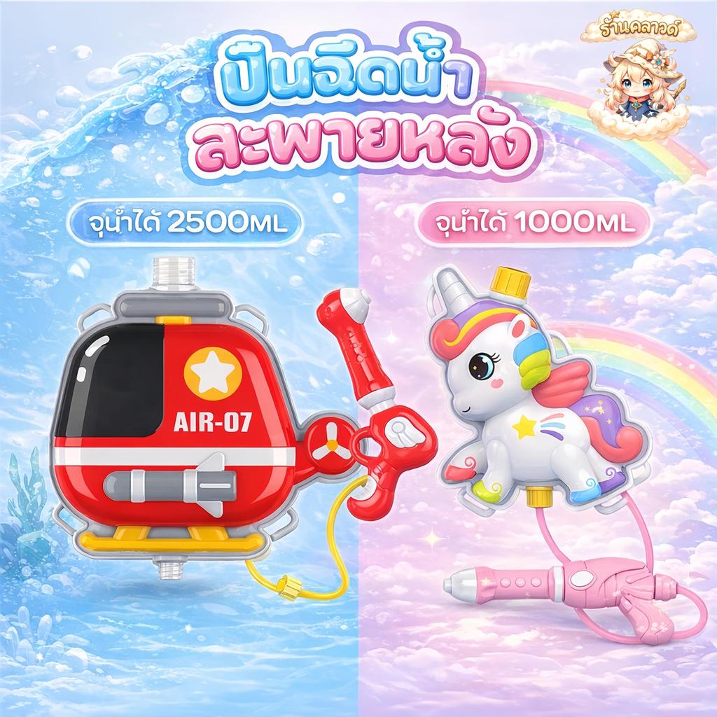 กระบอกฉีดน้ำเด็กสะพายหลัง ปืนฉีดน้ำเด็ก แบบเป้อุ้มหลัง ลายการ์ตูน น่ารักมากก ราคา 87 ฿. (5.0) อัพเดทล่าสุด 04/04/2026 00:04