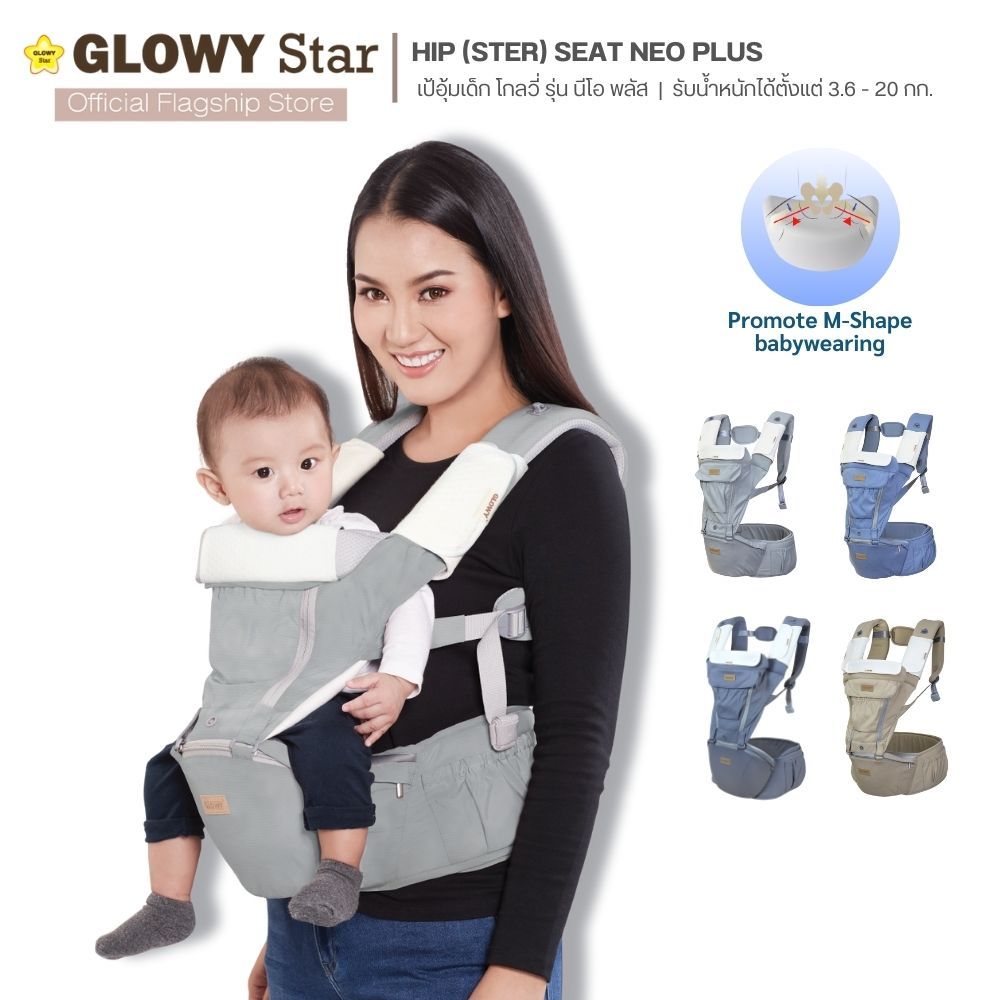 GLOWY Hip (Ster) Seat Neo Plus เป้อุ้มเด็กฮิปซีทนี้รองรับน้ำหนักได้ตั้งแต่ 3.6ถึง 20 กิโลกรัม หรืออายุประมาณ 3ถึง36เดือน ราคา 1,450 ฿. (4.9) อัพเดทล่าสุด 03/04/2026 17:02