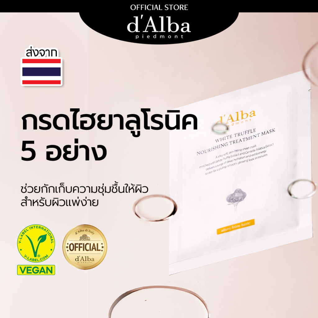 d'Alba White Truffle Nourishing Treatment Mask 1PC & 5 PCS in 1 PACK ดัลบา ไวท์ ทรัฟเฟิล นอริชชิ่ง ทรีทเมนท์ มาส์ก ราคา 180 ฿. (4.9) อัพเดทล่าสุด 15/04/2026 15:09