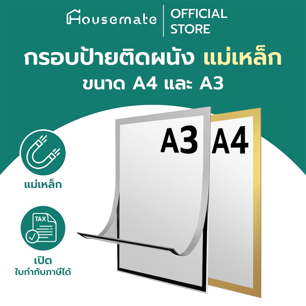 ✅ออกใบกำกับภาษี - กรอบป้ายติดผนัง กรอบโชว์ป้ายประกาศ แม่เหล็ก ไม่ต้องเจาะผนัง มีกาวในตัว A4 และ A3 ราคา 6 ฿. (4.9) อัพเดทล่าสุด 16/04/2026 00:04
