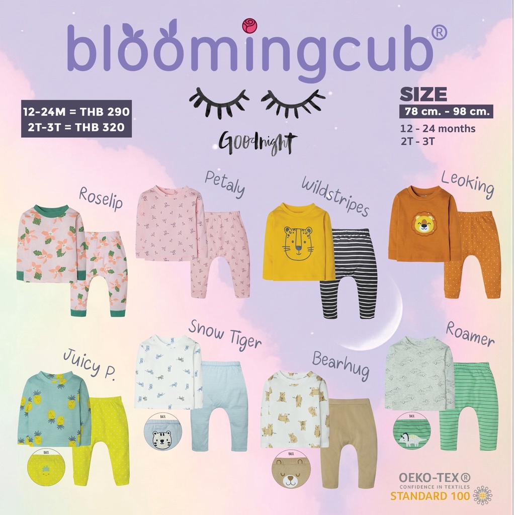 Bloomingcub ชุดนอนเด็ก เสื้อแขนยาว กางเกงขายาว ไม่มีตะเข็บกลาง ทำให้ใส่สบาย ผ้าคอตตอนนุ่มมาก ไซส์ 6 เดือน-3 ขวบ ราคา 350 ฿. (4.8) อัพเดทล่าสุด 02/04/2026 22:02
